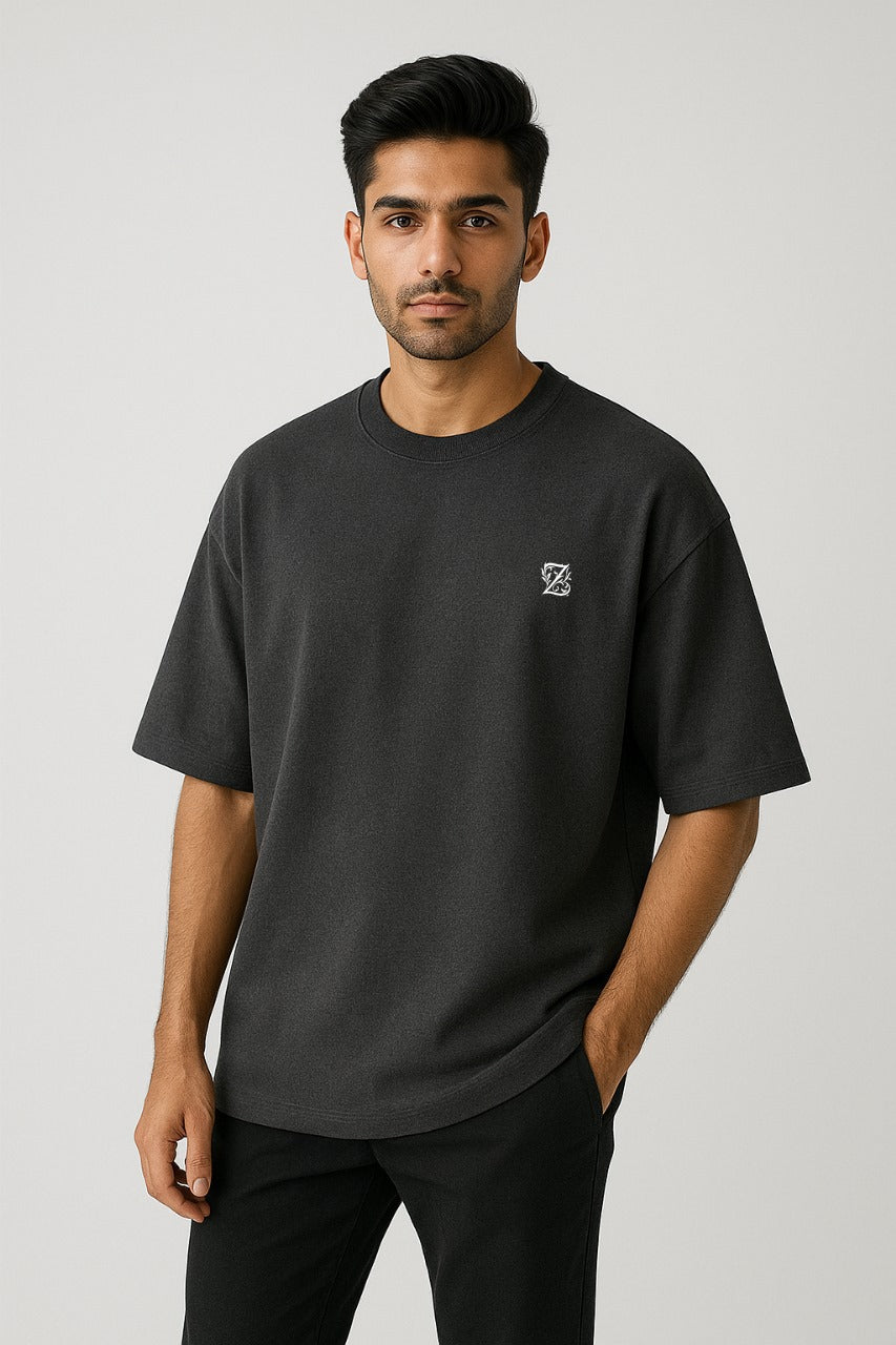 xZarwaad Charcoal Grey Drop Shoulder T-shirt Premium Oversized Streetwear in Pakistan